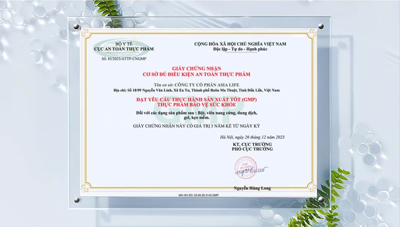 + Quy trình sản xuất: đạt tiêu chuẩn GMP, ISO…